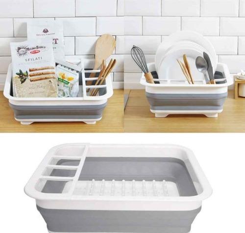 🍽️Es retráctil y fácil de almacenar debido a su material flexible y así sacar el máximo provecho a su estante de cocina, Con aberturas de salida de agua para facilitar el secado de la vajilla.🍽️